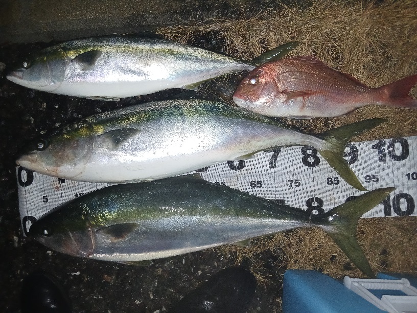写真中央のブリが、101〜103cm、10,7kgでした、ややスマートでしたが、長さは十分でした。